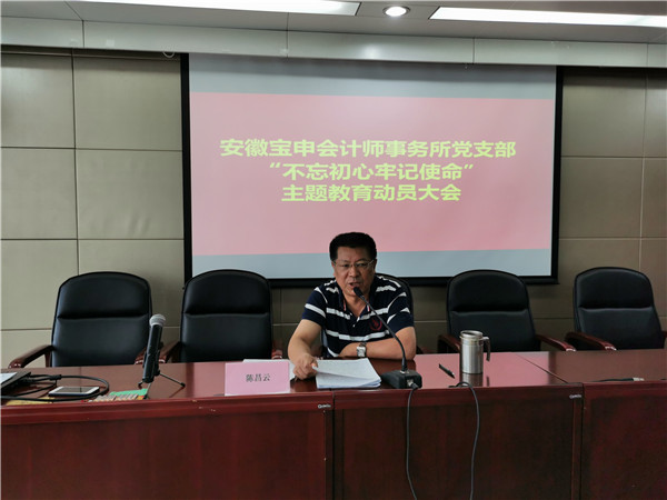 首页 > 行业党建 安徽宝申会计师事务所党支部召开“不忘初心,牢记使命”主题教育动员大会