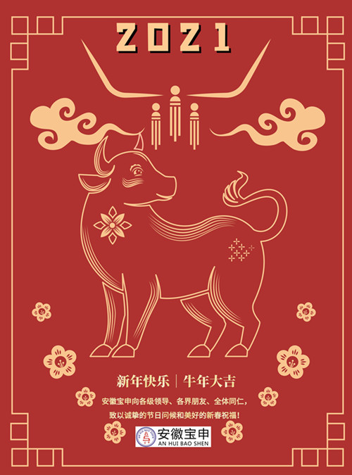 值此新春佳节来临之际,安徽宝申向各级领导、各界朋友、全体同仁,致以诚挚的节日问候和美好的新春祝福!