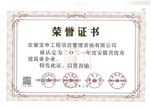 安徽宝申再次荣获“安徽省优秀建筑业企业”荣誉称号,树立了良好的职业形象和品牌效应。宝申是一个团结、稳定、勇于创新、积极进取的集体,是安徽同行业的规范者和引领者,我们有实力、有信心,踔厉奋发、勇毅前行,为社会各界提供最优质的专业服务,为行业和社会发展做出新的贡献。