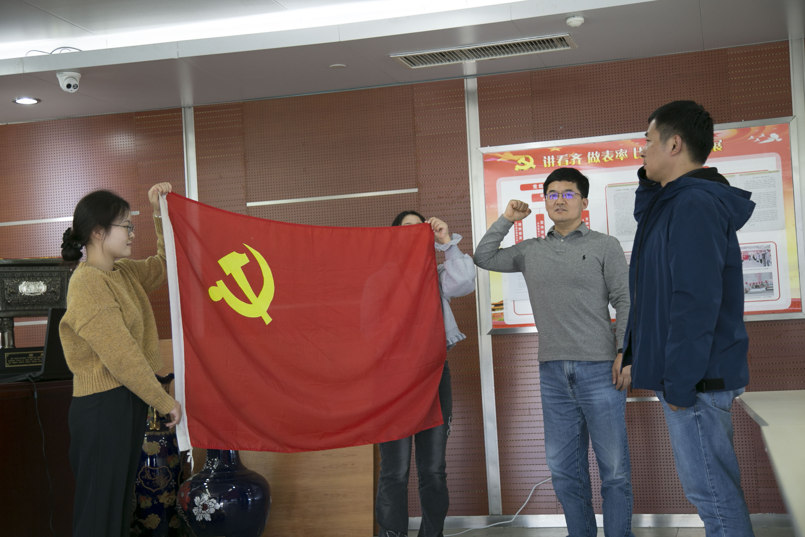 会上,按照党员发展程序,预备党员史一鸣同志宣读转正申请书,详细汇报了预备期间的思想、工作、学习及生活等方面的情况,表明转正态度以及坚定不移跟党走的决心;入党介绍人和支部委员会依次介绍史一鸣同志在预备期的表现、教育、考察情况,并对史一鸣同志如期转正表达了肯定意见;与会党员充分讨论,对预备党员如期转正发表了意见;会议以无记名投票的方式就预备党员转正进行了表决,预备党员史一鸣同志票决通过,成为一名中共党员。党支部纪检委员朱建华领誓,史一鸣同志庄严宣誓,以铿锵有力的声音传达共产党员的使命感与责任感。