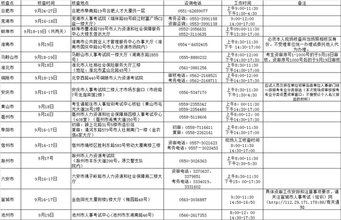 2019年度二级造价工程师资格考试安徽省各地市现场人工核查具体安排