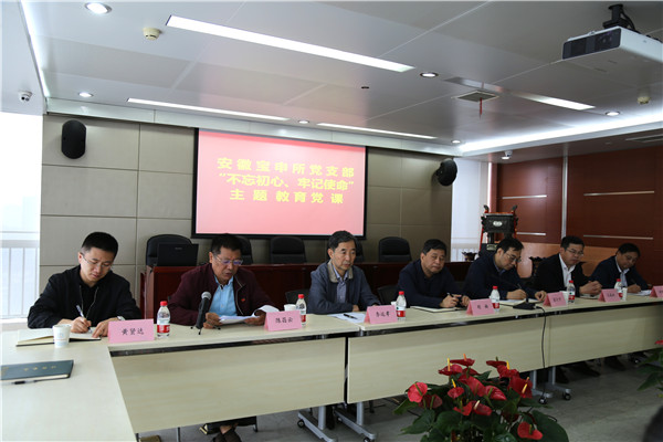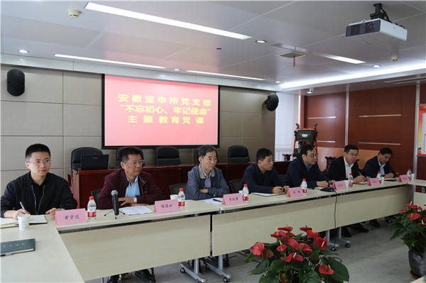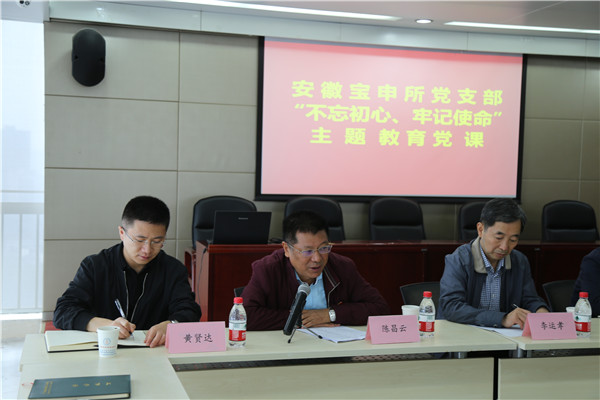 2019年10月17日,宝申党支部开展书记上“不忘初心,牢记使命”主题党课活动, 宝申所全体党员、积极分子和业务骨干39人参加。宝申所所长、支部书记陈昌云同志上了一堂题为“不忘初心,牢记使命,争做行业先锋”的主题党课,首先他阐述了共产党人“初心、使命”的主要内涵,而后就如何践行“不忘初心,牢记使命”进行论述,接下来他指出:宝申所的健康发展离不开党支部的政治引领和保驾护航,离不开上级党组织的关心和指导。认真反思目前还存在一些与新发展不相适应的问题,需要在主题教育中检视加以切实整改。他号召全体党员:团结带领全所同志,勤奋进取,不断创新,让初心扎根、使命在肩,建功立业新时代。