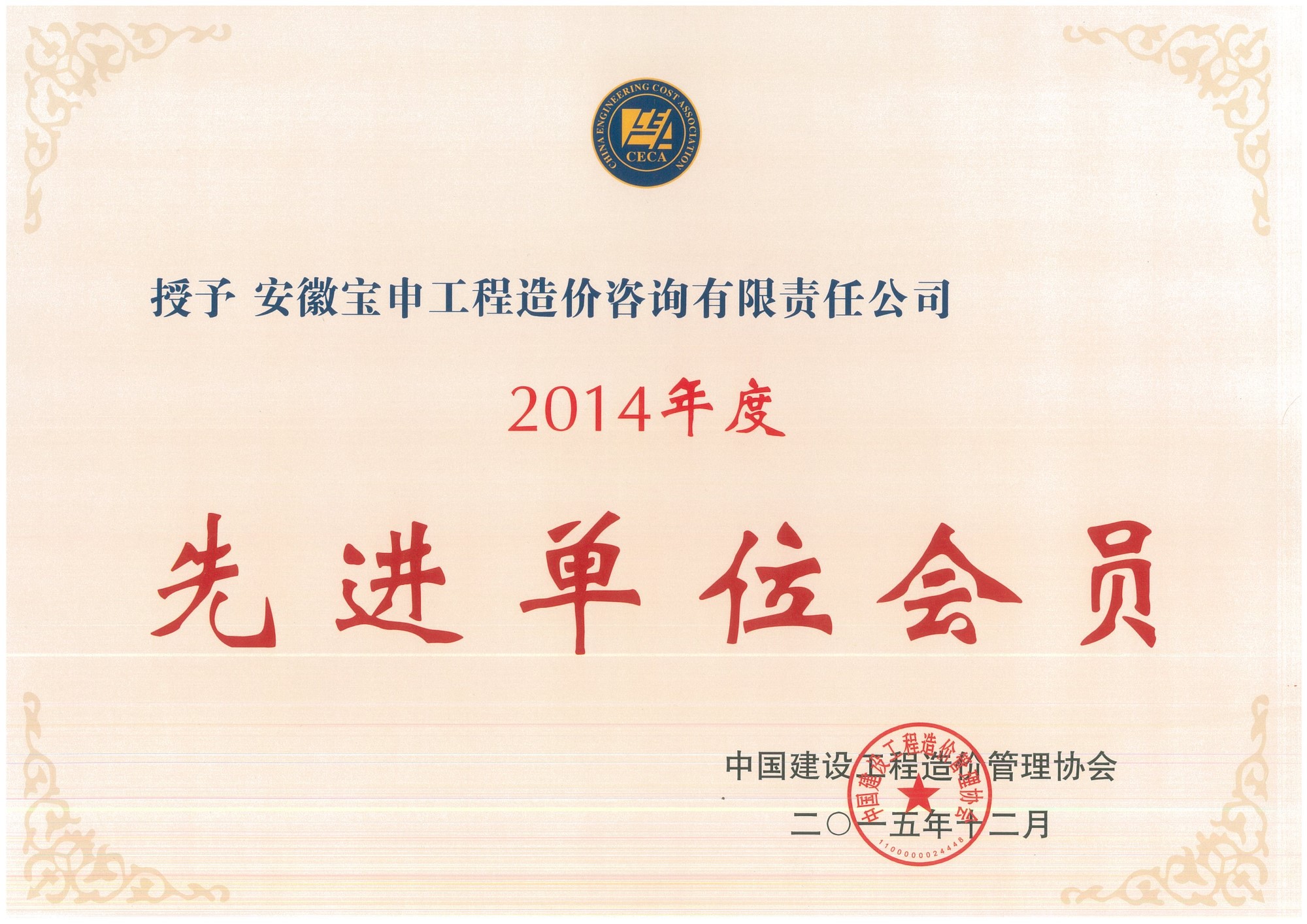 中价协先进单位会员--2015.12
