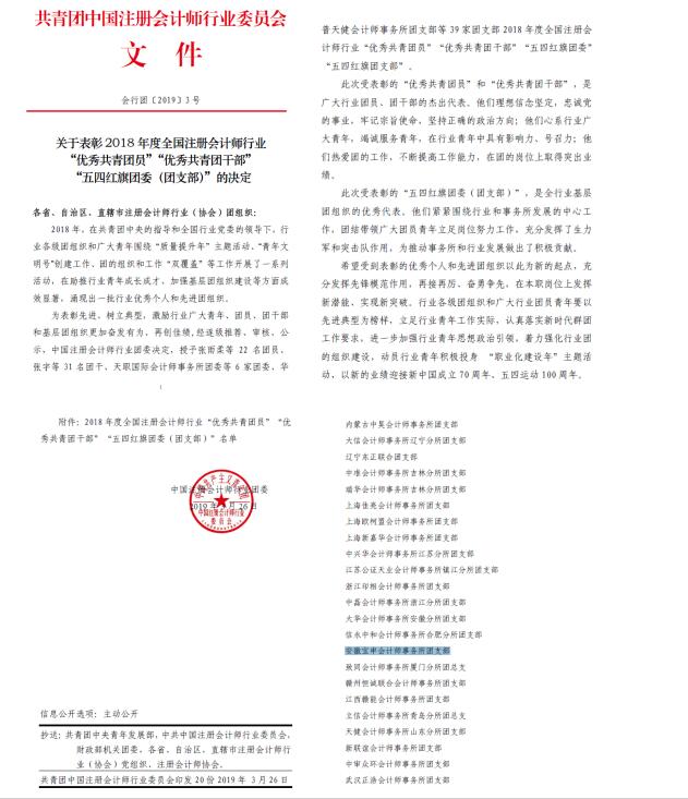 2018年度全国注册会计师行业“五四红旗团委(团支部)”--2019.03